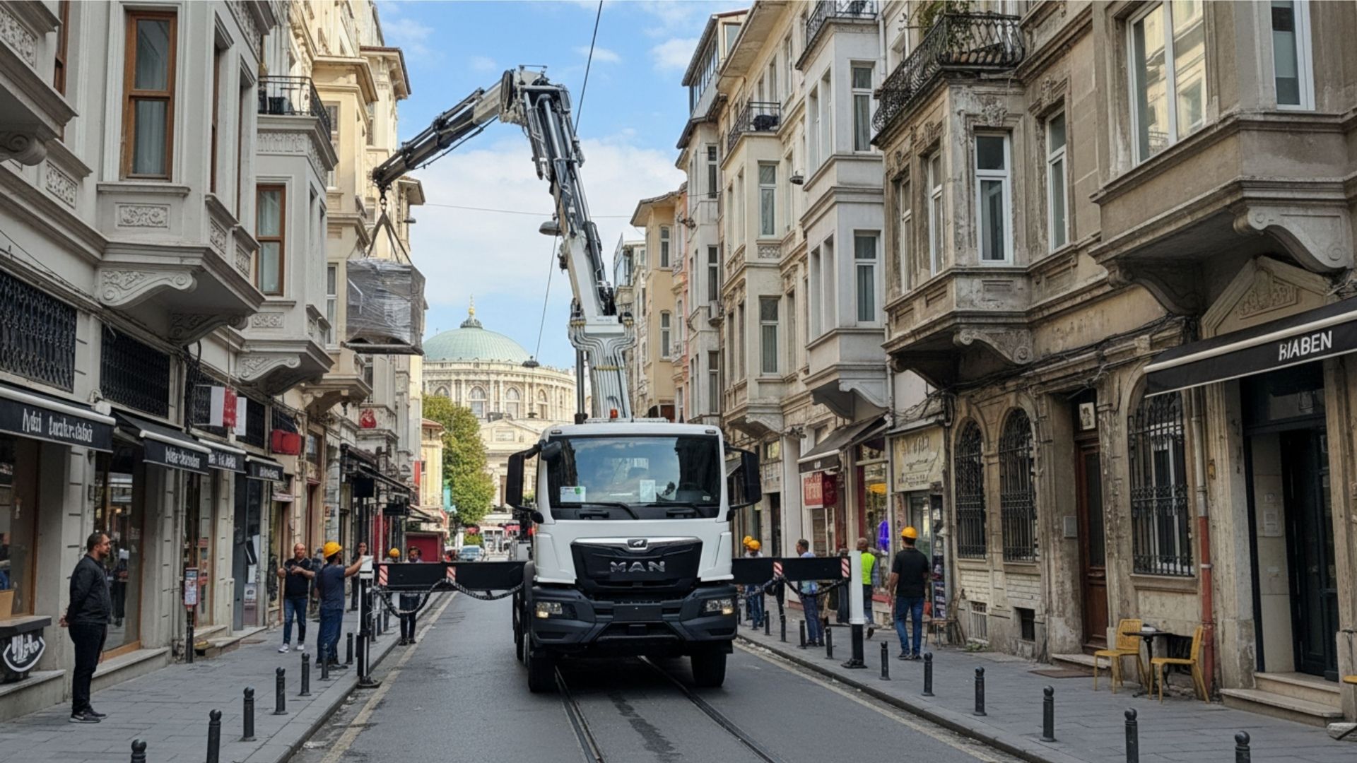 Sepetli Vinç ve Platform: Tarihi yapıların dış cephe tabela, reklam ve bakım işlerinde personelinize sarsıntısız ve güvenli bir çalışma alanı sunar.