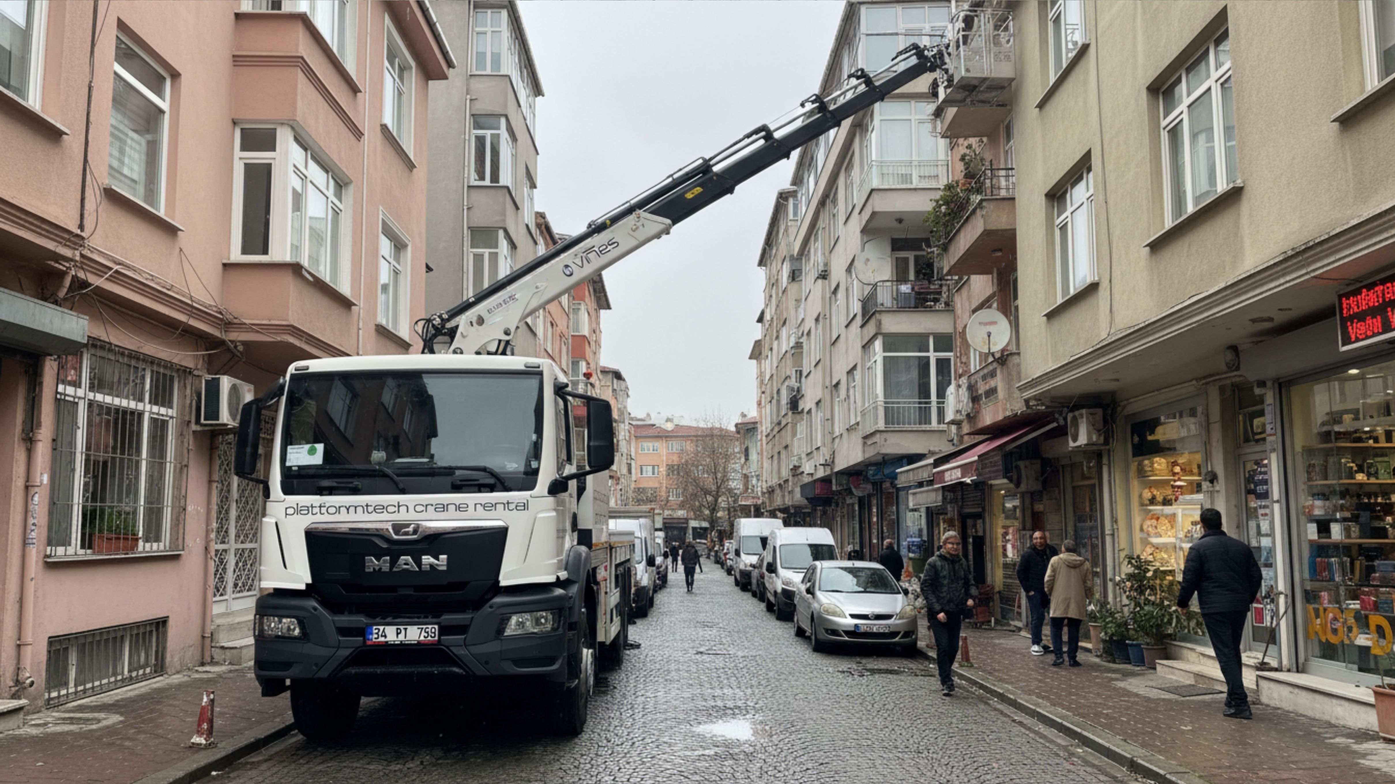 Esenevler’in bazen daralabilen sokak yapısı ve yoğun trafiği, vinç operasyonlarında tecrübeyi zorunlu kılar. Platformtech, modern filosuyla her türlü saha koşuluna uygun çözümler üretir:
