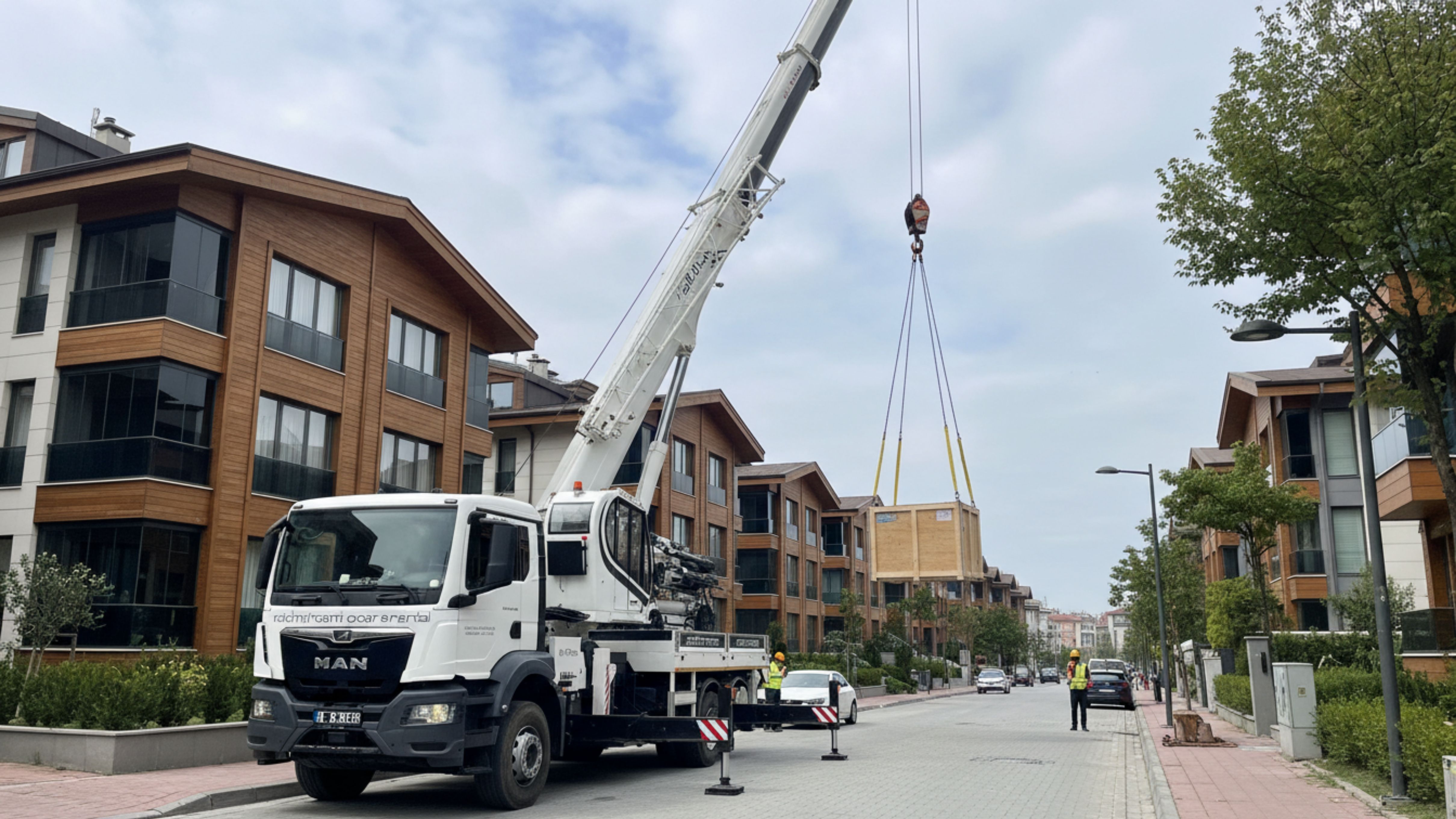 Kırmalı ve Mobil Vinç: Ağır peyzaj elemanlarının (yetişkin ağaçlar, dekoratif kayalar vb.) yerleştirilmesi veya çatı katlarına ağır teknik ekipmanların (ısı pompası, jeneratör vb.) taşınması süreçlerinde hassas kaldırma hizmeti veriyoruz.